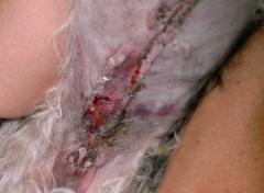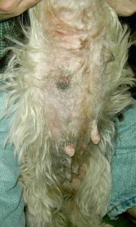 Because of the horrible condition that these dogs were in, the have had extensive medical care to bring them to a healthy state. Here are the issues that Faith & her babies, Sara and Sophie have had to deal with so far. Faith has had a bladder and kidney infection, lyme disease, sarcoptic mange, huge mammary tumors and several seerely infected teath. Bladder and or Kidney Infection The puppies, Sophie and Sara have had sarcoptic mange, worms and an upper respiratory infection. |