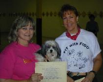 Hi, my name is Snap. My mom wanted me to tell you my story so here I am. If you are reading this, chances are you have a little dog that might be snappy or slightly ill-tempered. I was when my mom first got me and that's why I'm telling you my story. My mom got me in December, 1999. I was found running on a freeway in Houston with my friend, Ginger. We were both a terrible mess - matted to the skin, full of fleas and with nasty open sores all over our bodies. And, we both had heart worm disease. While my friend Ginger was a very sweet little girl, I was not. In fact, my name, Snap, was given to me by the staff at the veterinary clinic because I "snapped" at everyone that tried to get me out of my cage. I was NOT a nice little girl. Everyone thought I must have come from one of those irresponsible breeders that leave the dogs in the back yard 24 hours a day, 7 days a week. The traits I exhibited at that time indicated that I may have been physically abused, most likely by a man, and that I had always been forced to fight over food. Anytime I became nervous or upset, I got very snarly. I certainly had not been kept as a beloved pet. This picture was taken the day I went home with my mom and dad from the vet clinic. I had been vaccinated and spayed. As you can see, I must have had puppies within the past few months - I still had a bit of milk. The first week I was home, I bit my "dad" several times when he tried to pick me up or even just pet me. That really wasn't a good way to start off a relationship. Luckily, I had wormed my way into the hearts of both my mom and dad and they were determined to help me become a stable, confident little dog. My mom started reading lots of books on dog behavior and learned a lot. One important thing she learned was to let me get comfortable in my environment before trying to discipline me or correct the behavior. She used the "no free lunch" or "nothing in life is free" approach to getting me comfortable. She also learned to NEVER become aggressive towards me if I got snarly. After a little while, my mom realized that she didn't have the skills or knowledge to really help me. When she sent me to the groomer, I had to be on a leash all the time because otherwise, they couldn't get me out of the crate. Although I was pretty good when I was alone with my mom, I was still was terrified of everyone and everything else. So, my mom enrolled me in a private obedience class with Loralei Zwitt, of Teacher's Pet in Houston. Mom learned quickly from Loralei that there were two basic problems: First she didn't know how to communicate with me, secondly, she didn't know how to give me comfort that she was in charge. You see, when a little dog like me with a checkered past is a fear biter, it's usually because they don't understand that the humans in their family will protect them and keep them from harm. So that's what Loralei made mom work on. It took a lot of time and effort. Mom worked with me every day for six weeks. Teaching me to want to obey and to get rid of the feeling that I had to be afraid of everything or to protect everyone from everything. Gradually, I became more and more confident. She took me to two other obedience classes - intermediate obedience where I learned to get along with other people and to ignore other dogs and finally she took me through a Canine Good Citizen prep class. My mom is very proud to tell you that on September 21, 2002, I was awarded the Canine Good Citizen Award. Started in 1989, CGC is a certification program that is designed to reward dogs who have good manners at home and in the community. The Canine Good Citizen® Program is a program that stresses responsible pet ownership for owners and basic good manners for dogs. The dogs are required to go through a ten-step test and all dogs who pass the CGC test receive a certificate from the American Kennel Club. So, if you have a little dog that doesn't have the manners you would like, please work with him or her. There couldn't be many dogs worse than I was - but my mom and dad loved me and thought I was worth the time and effort. Today, I'm a happy, healthy, very loved member of the household. This is me with mom and Loralei when I got the certificate. I PASSED!! If you have any questions about dealing with snappy dogs or just training in general, Email Snap here. You, too, can become a wonderful little pet. If you are in Houston, check out classes at Teacher's Pet Behavioral Counseling or My Dog and Me Activity Center. A note about snappy dogs and behavioral training, in general. (From Snap's mom) A trainer CANNOT train your dog to stop being snappy. Only YOU can train your dog. Good trainers can give you lots of hints and suggestions about how to deal with them, but they CANNOT train the dog. YOU have to do your homework and YOU have to be dedicated. It oftentimes takes months and months of work to get past abuse worked out of a rescue dog's system. If you aren't up to devoting the time and effort (LOTS of it) then don't try. It will only make the dog worse. Snap was lucky. Our family fell in love with that pitiful little face the moment we set eyes on it and were DETERMINED to make up to her for her abusive past. We really didn't even consider the alternative - we set out to succeed and, I'm happy to say, we did. Update: October 16, 2002 Snap had surgery for a tiny tumor on her rear end today. Interestingly enough, it turned out to be a BB - yes, that's right, my little Snap has been shot sometime in her past life. Wish I knew where she lived before. You just never know how these dogs have been treated. |
